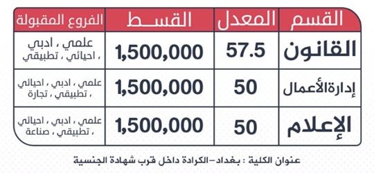 استناداً إلى كتاب وزارة التعليم العالي والبحث العلمي / الدائرة الإدارية والمالية/ الموازنات وشؤون الجامعات المرقم